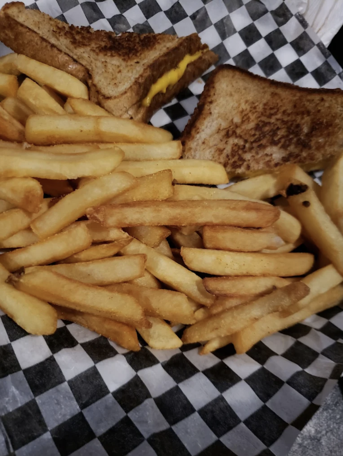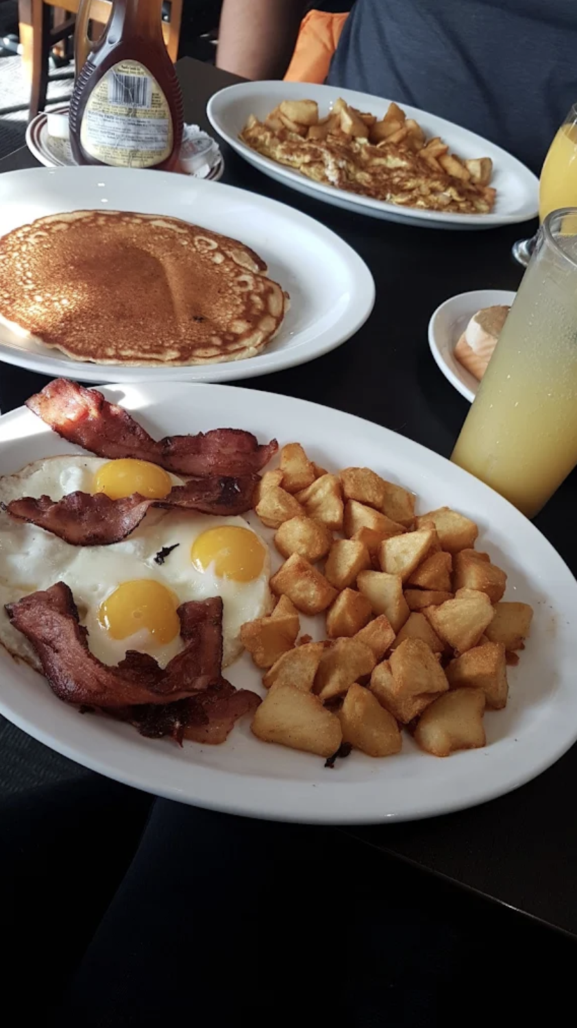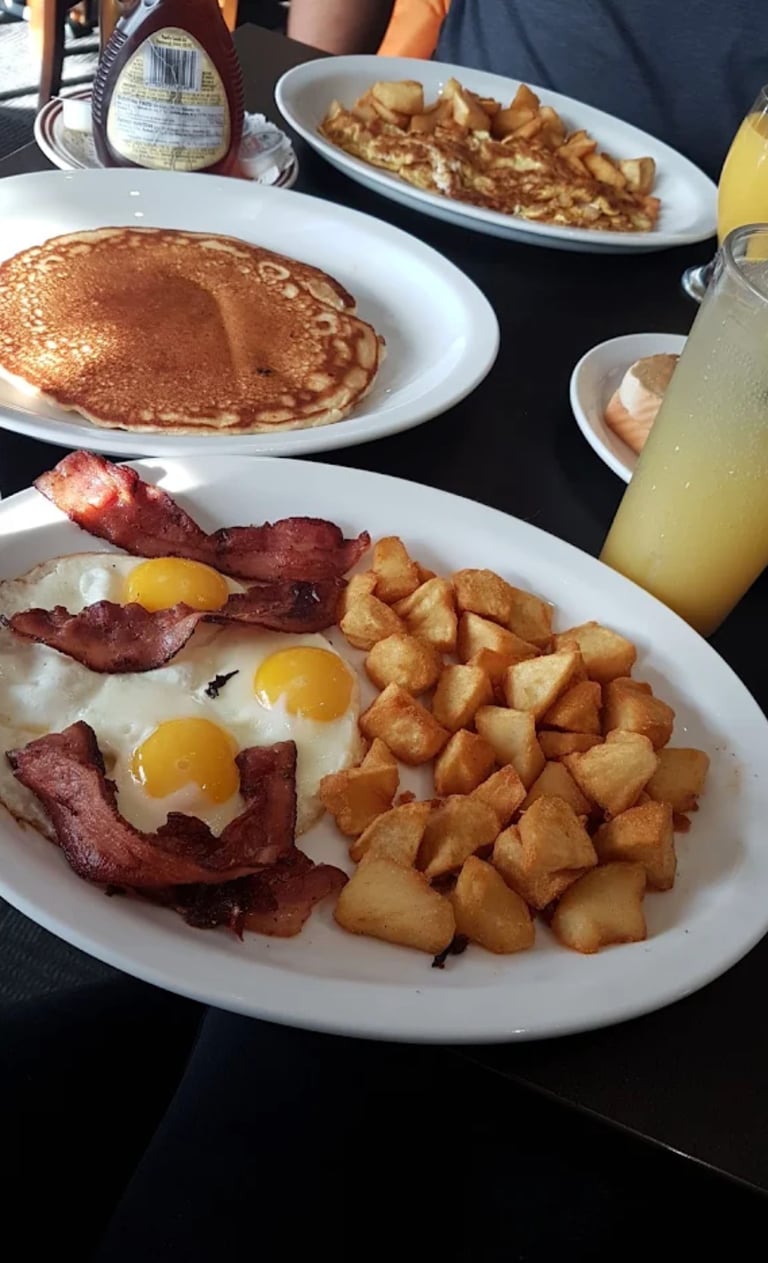 3 Slices of French Toast & 4 Strips of Bacon Served With Pancake Syrup & Sprinkled With Cinnamon